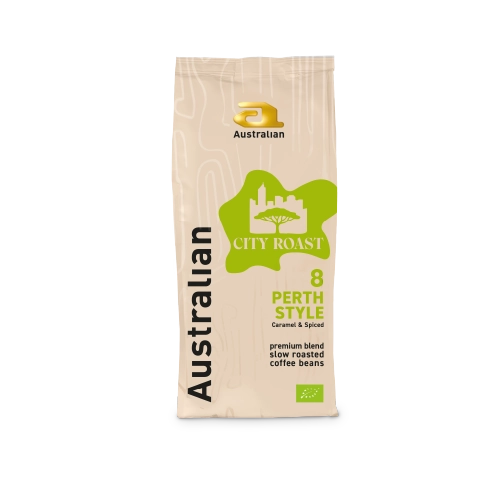 Deze karaktervolle koffie is vol van smaak en rijk aan tonen van karamel, kaneel, geroosterde hazelnoot en subtiel afgerond met een hint van sinaasappelschil. Onze City Roast Perth style is een heerlijk gelaagde koffie, perfect voor een rustmoment met diepgang. De koffie heeft intensiteitslevel 8/12. Koffieboon: Arabica & Robusta Blend. Smaak: Karamel, kaneel, geroosterde hazelnoot. Keurmerk: Biologisch.